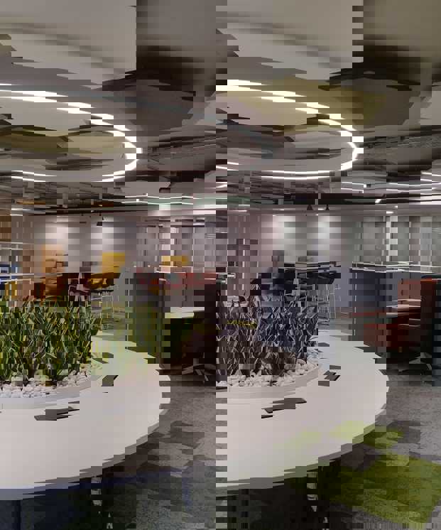 Kontrol edilebilir aydınlatma sistemleri ile mükemmel atmosferler yaratarak çalışanların iş istasyonlarından uzaklaşıp rahatlayacakları alanlar sağlanır.