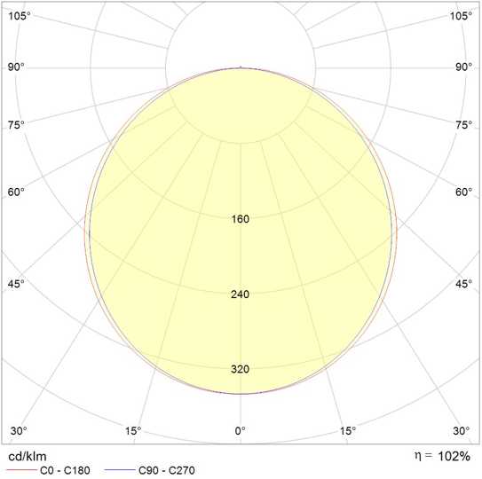 Opal white prismatic diffuser with homogeneous light distribution, high light transmission.