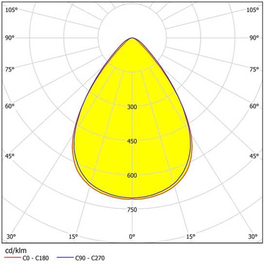 Optical lens with UGR <19, anti-glare and homogeneous light distribution.