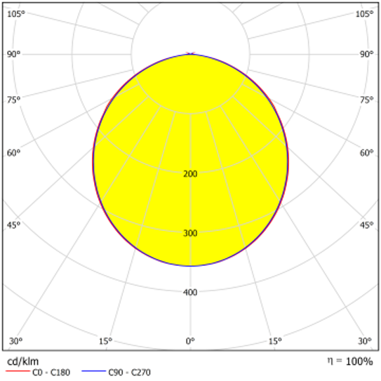 Opal white diffuser with lambertian light distribution and high transmissivity.