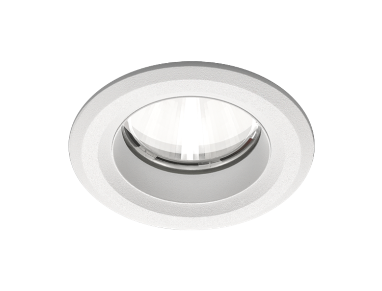 Compact ceiling recessed downlight made of steel and aluminium. Powder coated in