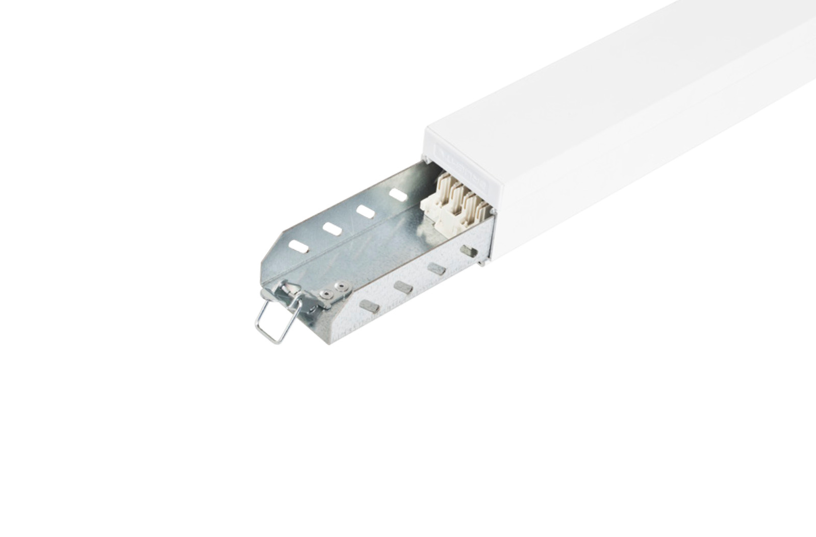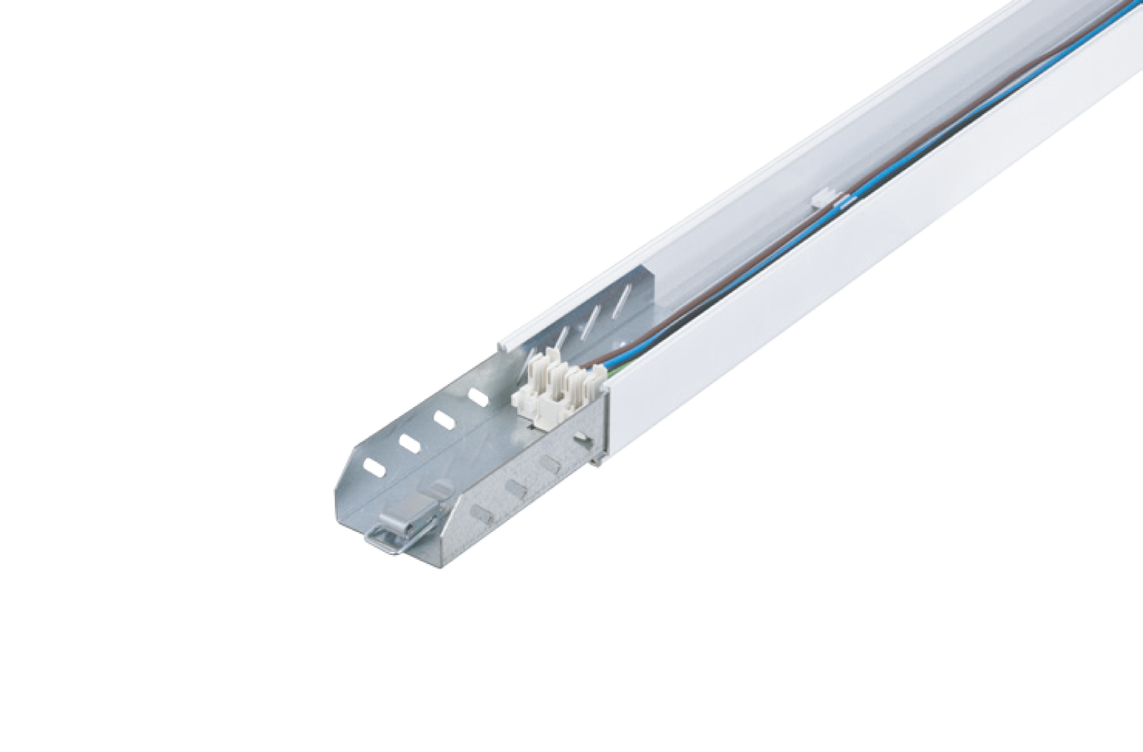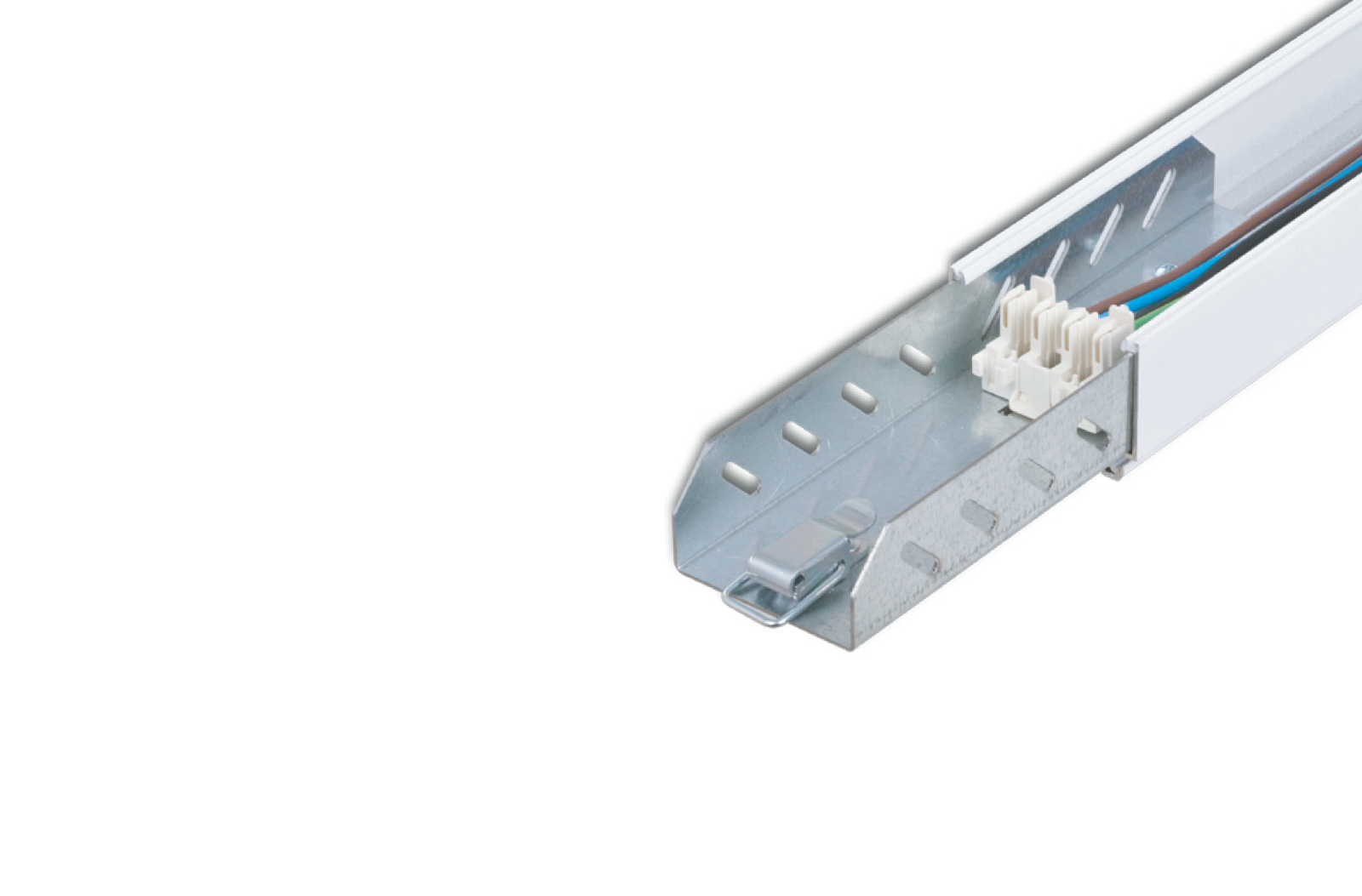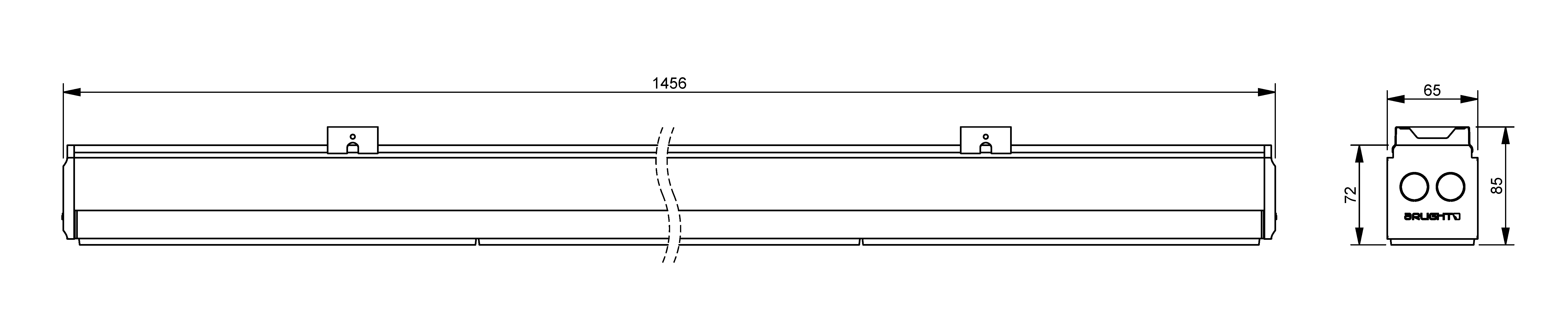 Aluminium extrusion profile and stainless steel mounting accessories with plastic end cap.