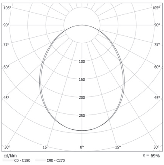 Opal white polystyrene diffuser with lambertian light distribution.