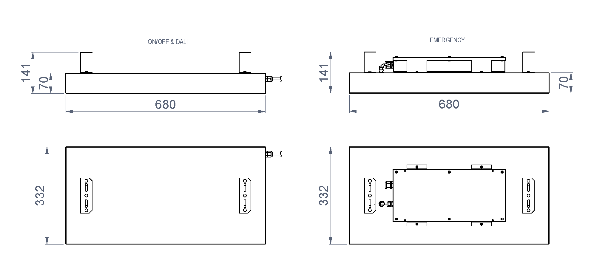 * 1 veya 3 saat süreli acil aydınlatma modülü