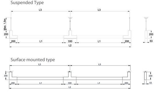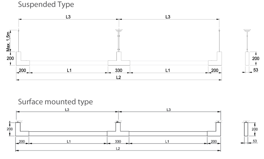 Mat natürel eloksallı, alüminyum ekstrüzyon profil ve çelik montaj aksesuarlı.